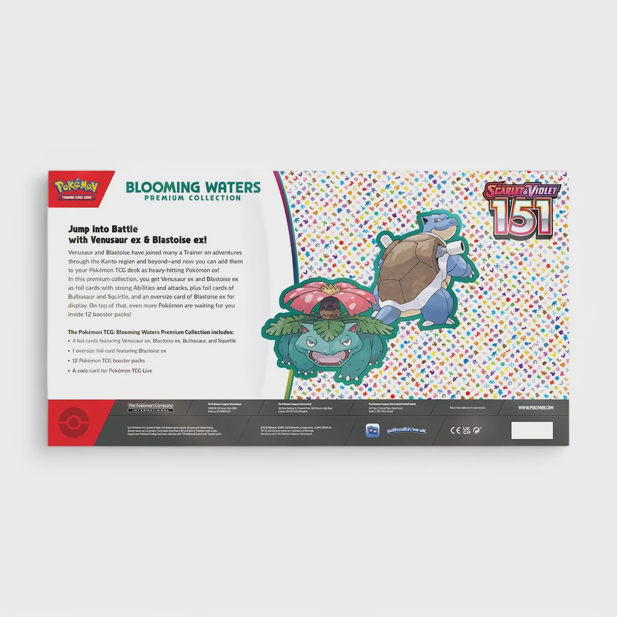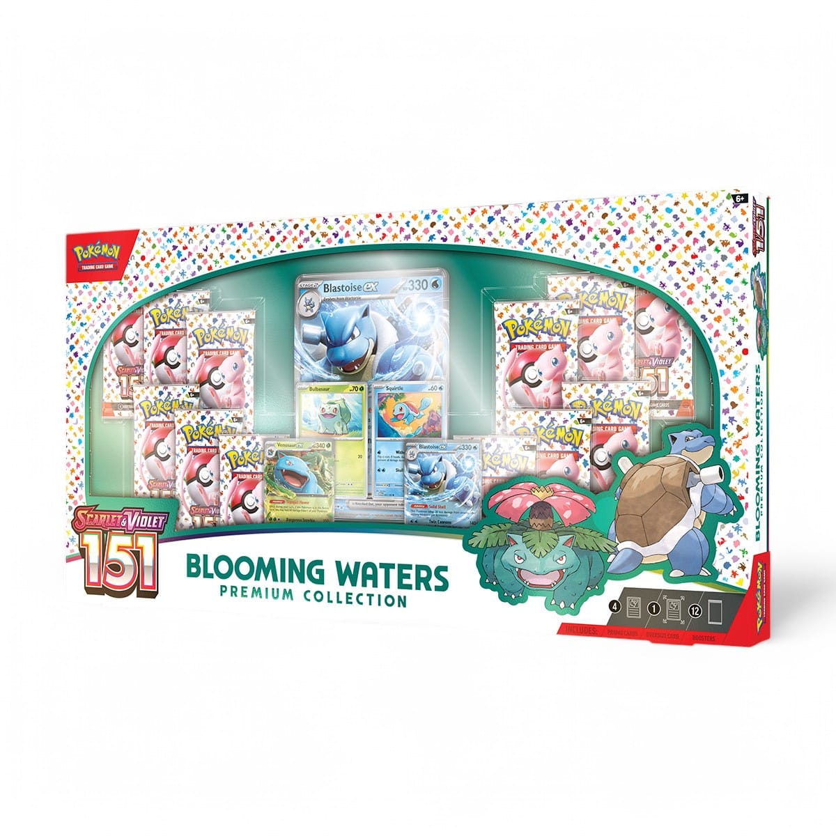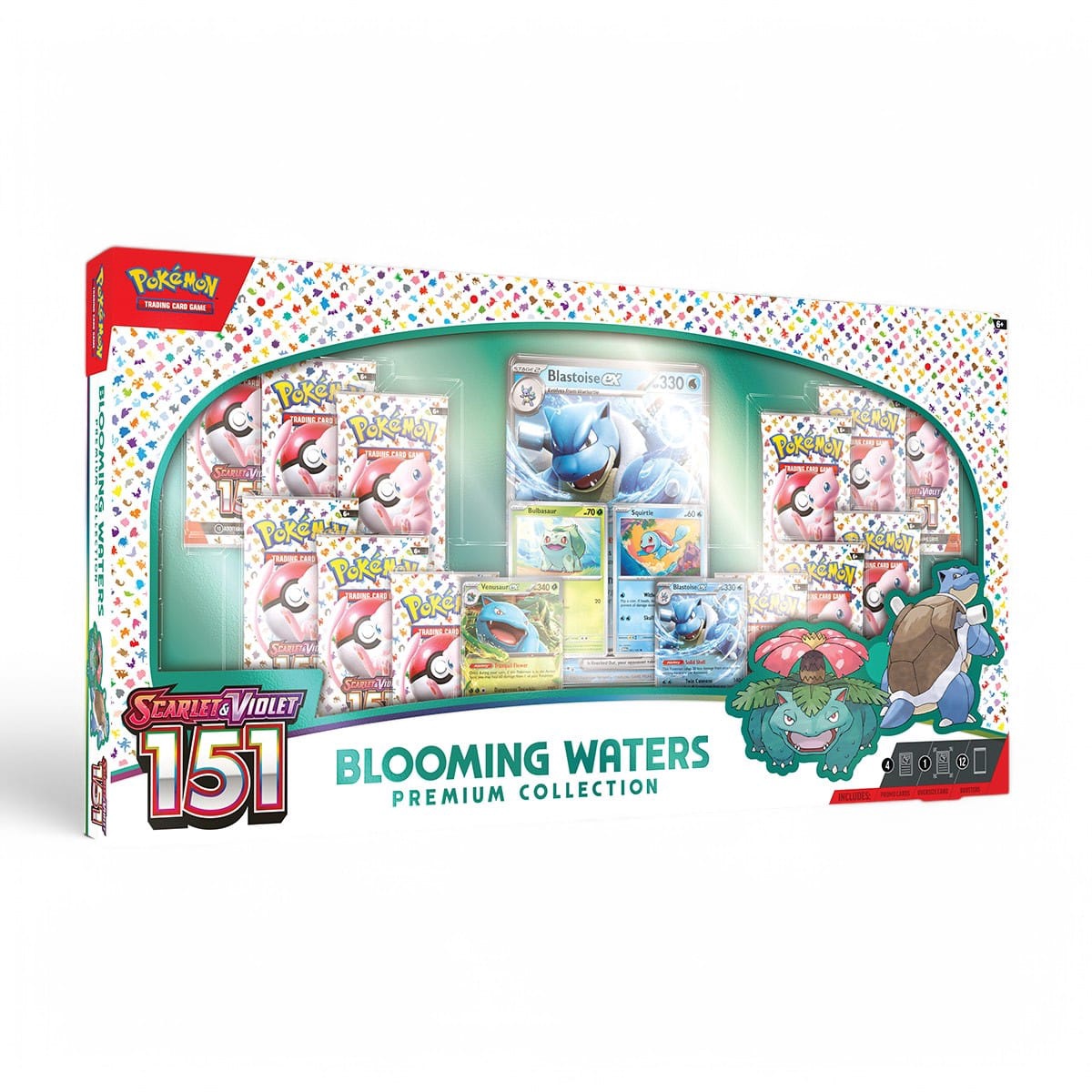 Ontdek de Pokémon TCG: Scarlet & Violet – 151 Blooming Waters Premium Collection met Venusaur ex, Blastoise ex en 12 boosters. Beperkt beschikbaar!